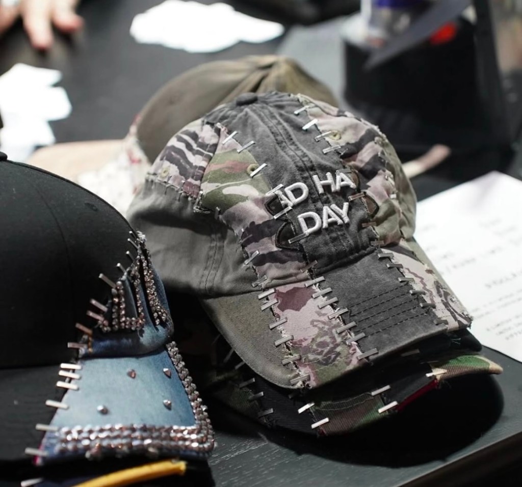 Chaque casquette est une petite œuvre d’art, alliant l’esthétique brute à un design novateur. Les agrafes, d’habitude perçues comme de simples objets utilitaires, deviennent ici des détails de style, apportant une touche inattendue à un accessoire classique.