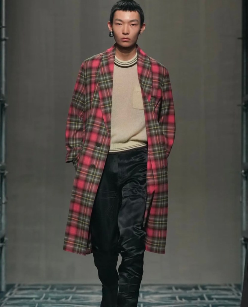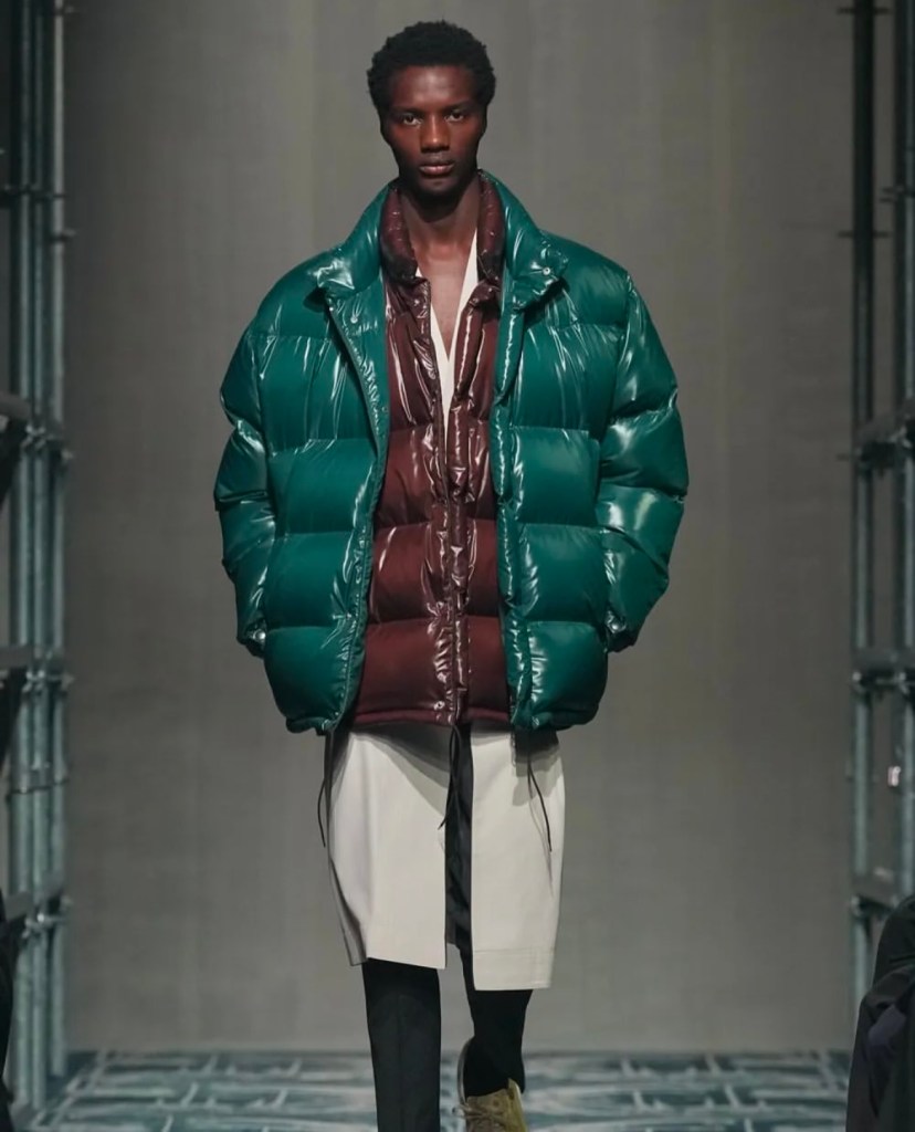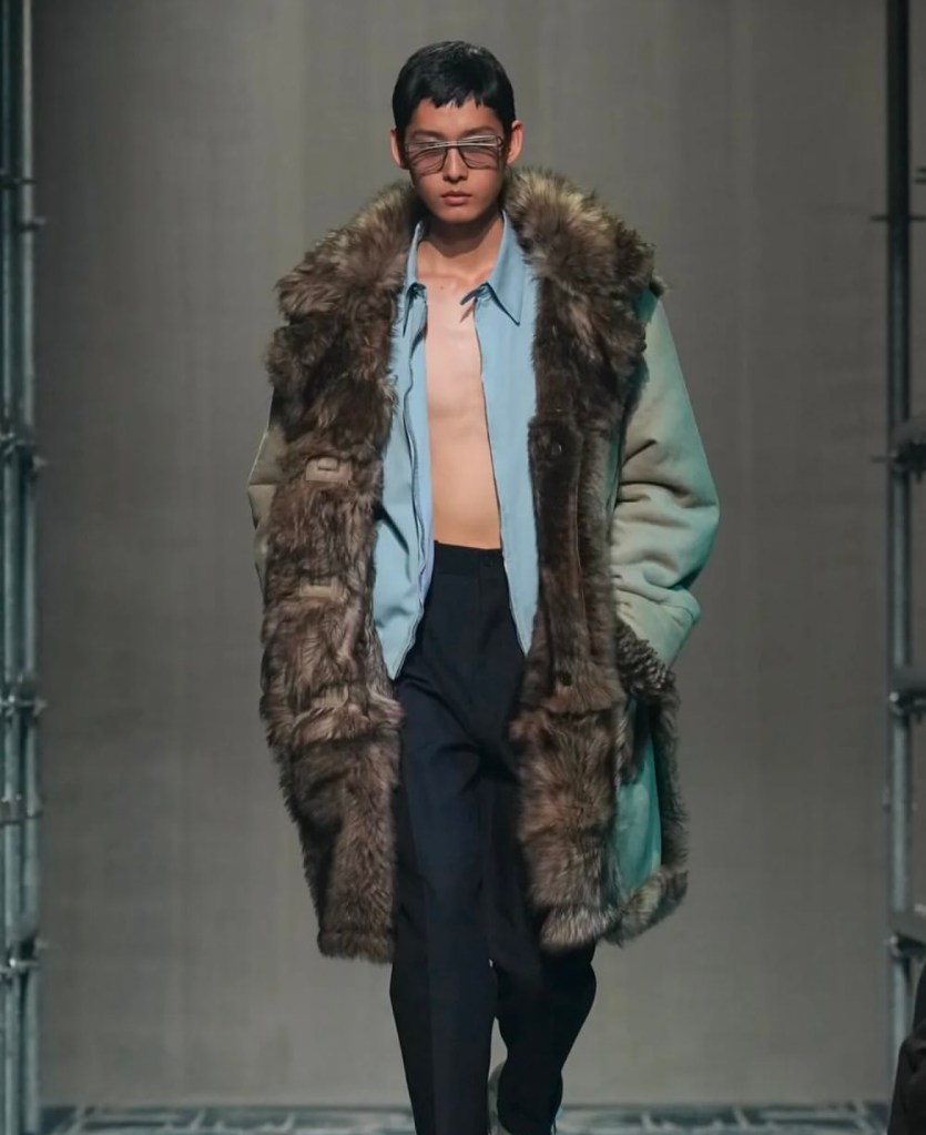 Le défilé, qui s’est tenu dans un espace industriel audacieux, a été une véritable exploration visuelle de la mode. Les créateurs ont mis en avant des pièces qui mêlent classicisme et avant-garde, en jouant sur des codes visuels inédits. Parmi les looks qui ont marqué les esprits, on retrouve des manteaux en fausse fourrure portés à l’envers, des trenchs en laine aux ourlets effilochés, et des doudounes superposées en couches doubles. Ces pièces, à la fois fonctionnelles et futuristes, ont défié les attentes tout en affirmant un style unique, où la beauté de l’imperfection se fait manifeste.