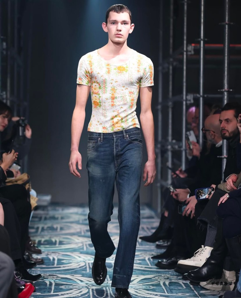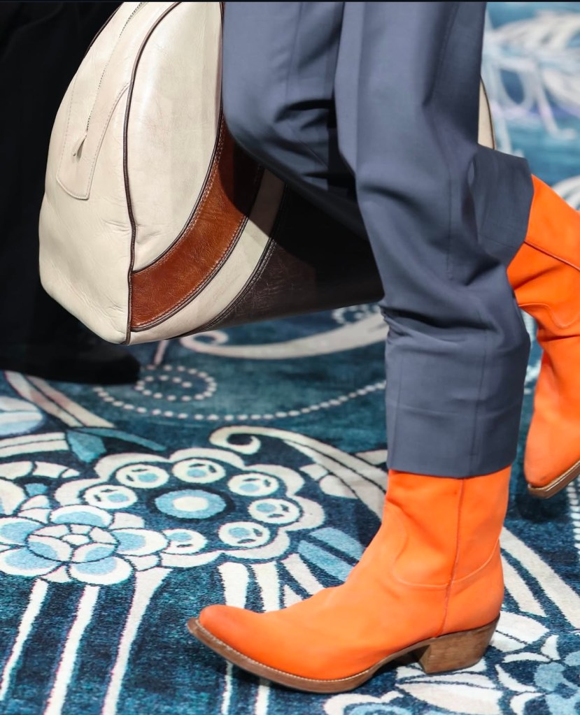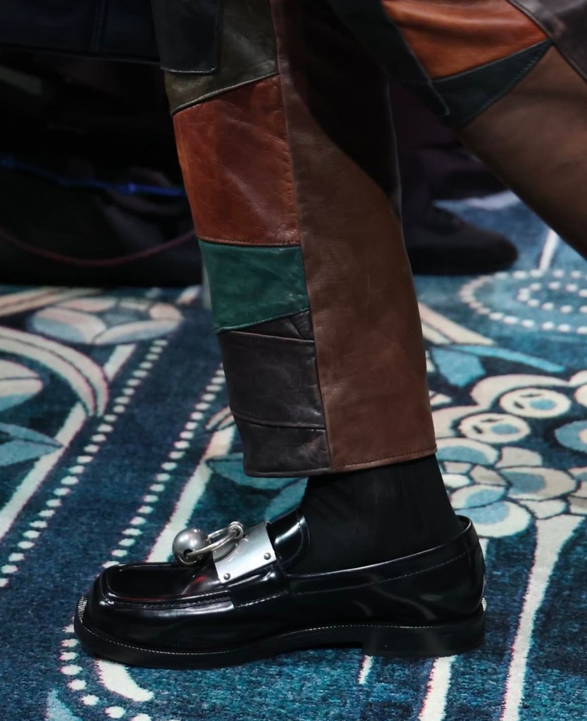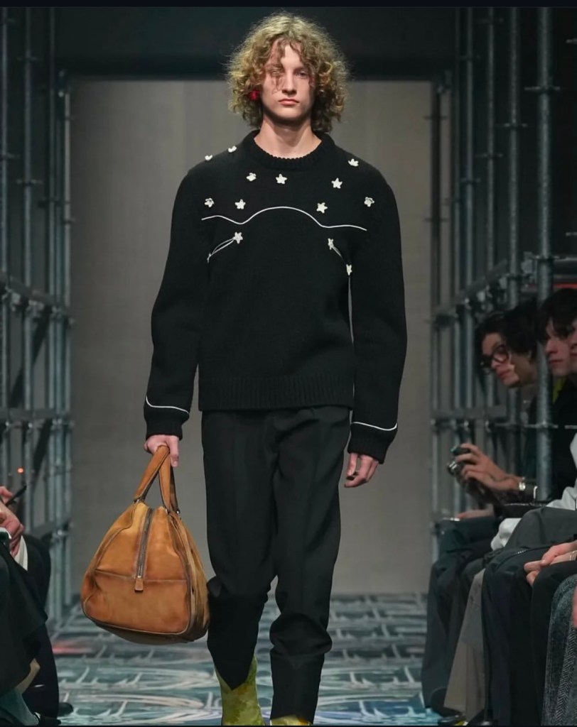 Les accessoires n’ont pas été en reste. Les bottines pointues, ornées de motifs éclatants, sont venues compléter ces silhouettes déjà audacieuses, ajoutant une dimension spectaculaire à l’ensemble. À travers cette collection, Prada nous invite à repenser la mode comme un terrain d’expérimentation sans limite, où chaque élément peut se réinventer et prendre une nouvelle forme.
