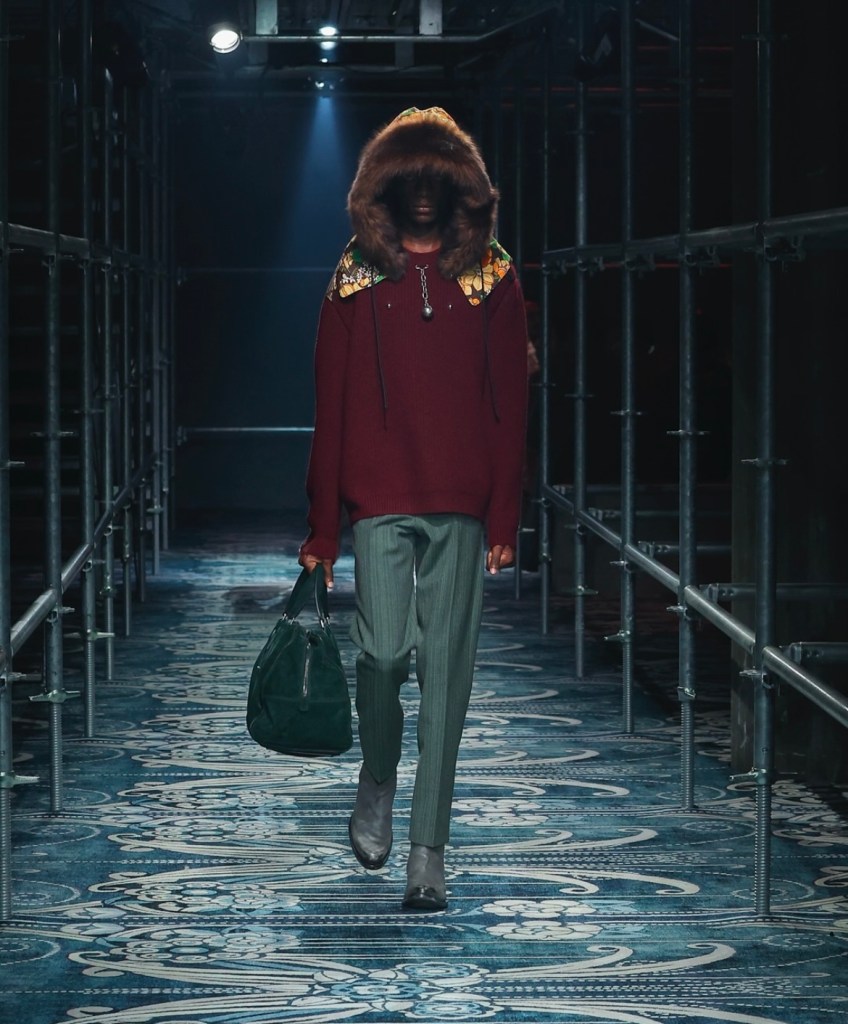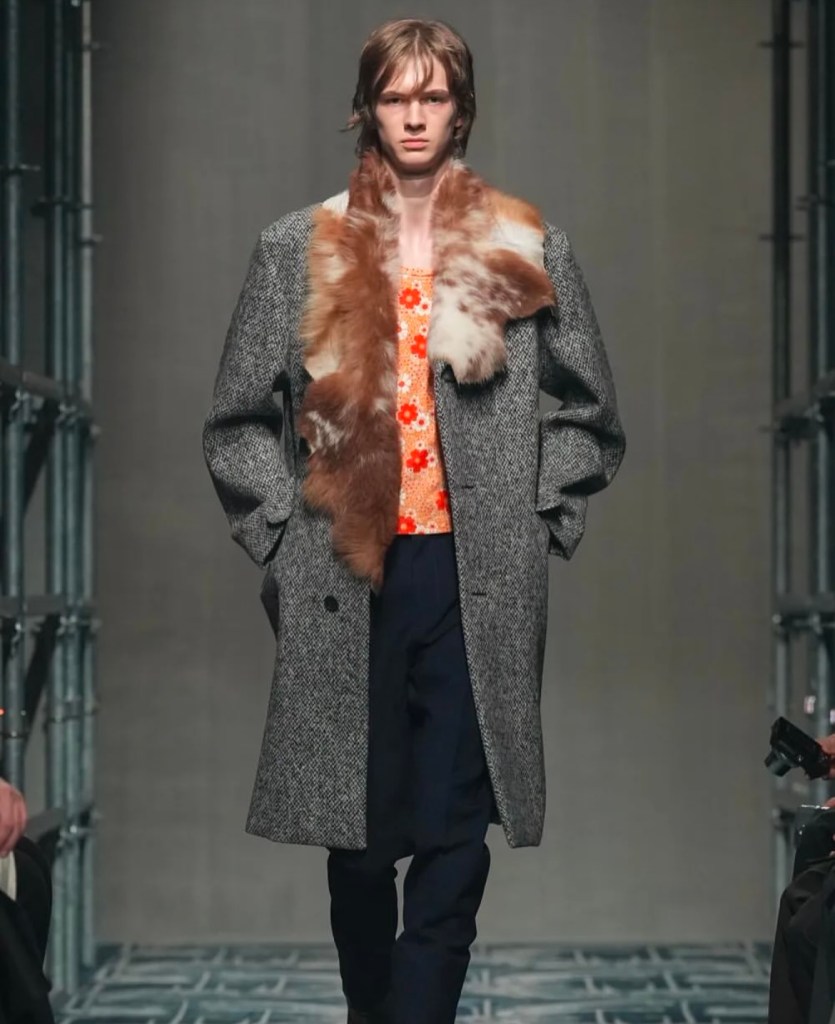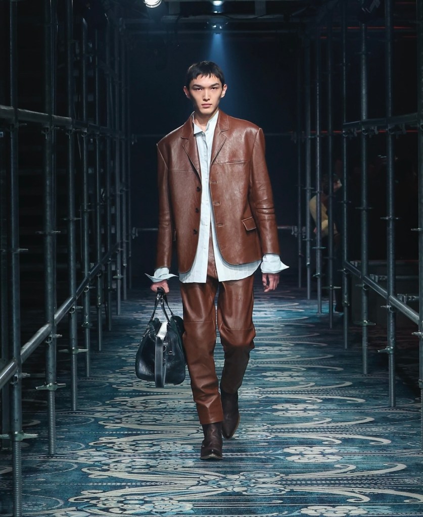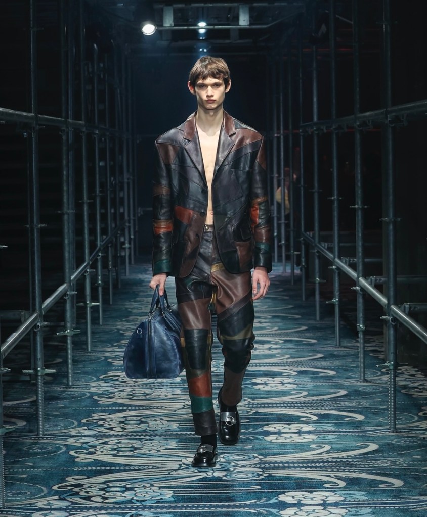 Le décor du défilé, conçu par Catherine Martin, a été l’un des moments forts de ce spectacle. Une structure labyrinthique, presque hypnotique, a enveloppé les mannequins dans une ambiance immersive, accentuant l’aspect sensoriel de la présentation. Chaque détail, du design des écharpes en fausse fourrure aux sacs en cuir d’une élégance irréprochable, rappelait que la mode chez Prada ne se contente pas de suivre les tendances. Elle les redéfinit constamment, offrant une nouvelle perspective sur ce que signifie être à la fois audacieux et raffiné.