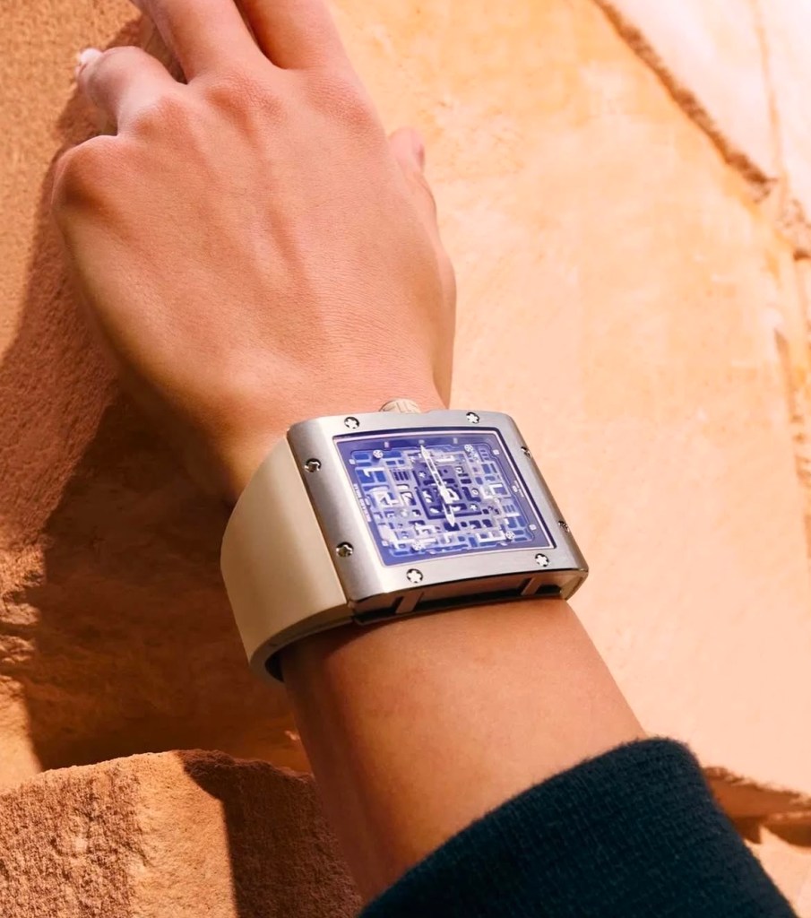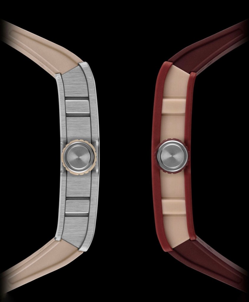 La RM 16-02 s’impose dès le premier regard grâce à son boîtier rectangulaire inédit, un hommage subtil au design brutaliste. Disponibles en deux versions — titane microbillé ou Terracotta Quartz TPT —, les finitions évoquent un subtil équilibre entre modernité industrielle et chaleur organique. Avec des dimensions de 36 mm x 45,6 mm, ce garde-temps affirme une présence à la fois discrète et audacieuse, s’adressant aux amateurs de montres qui veulent sortir des sentiers battus.