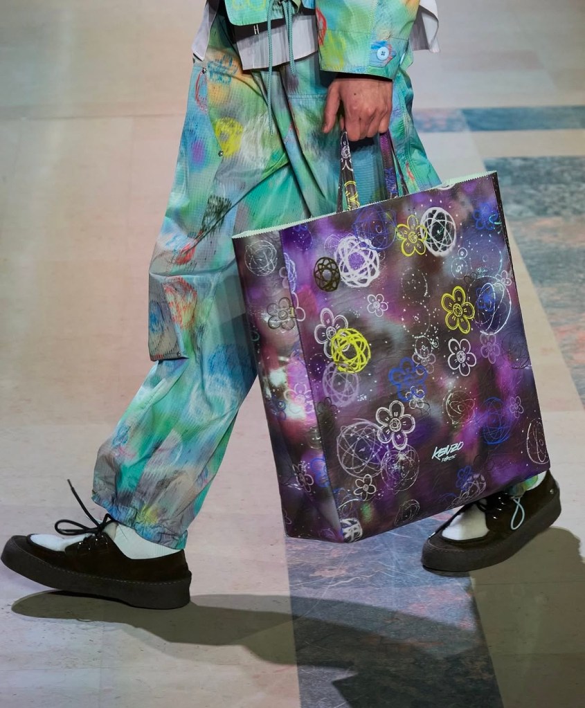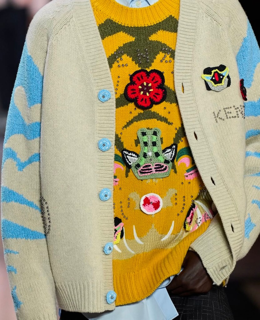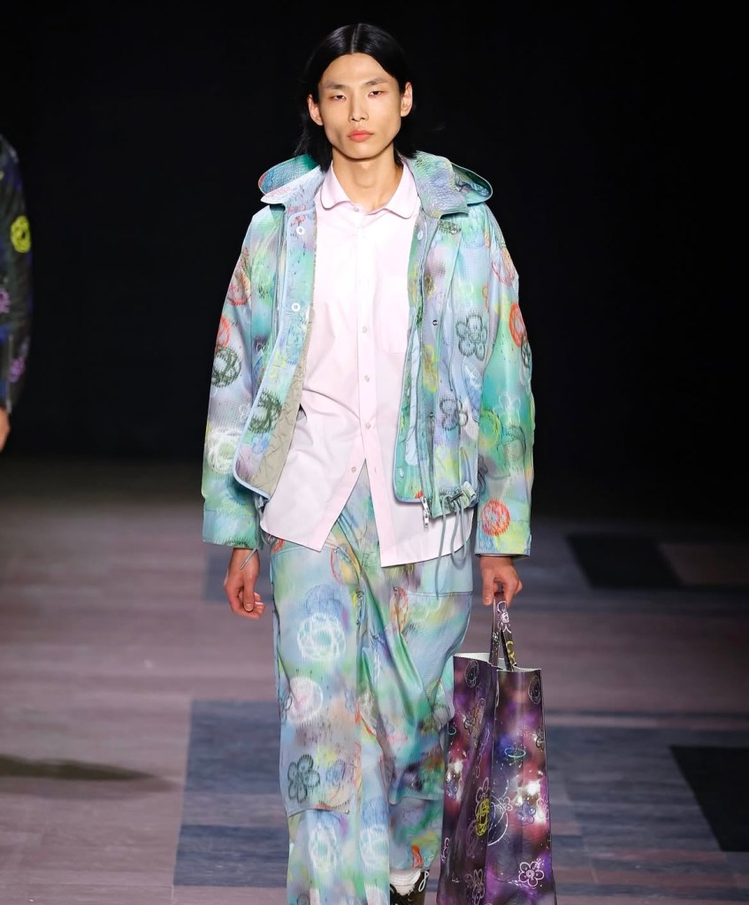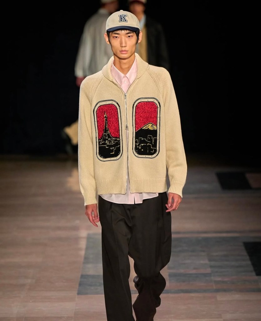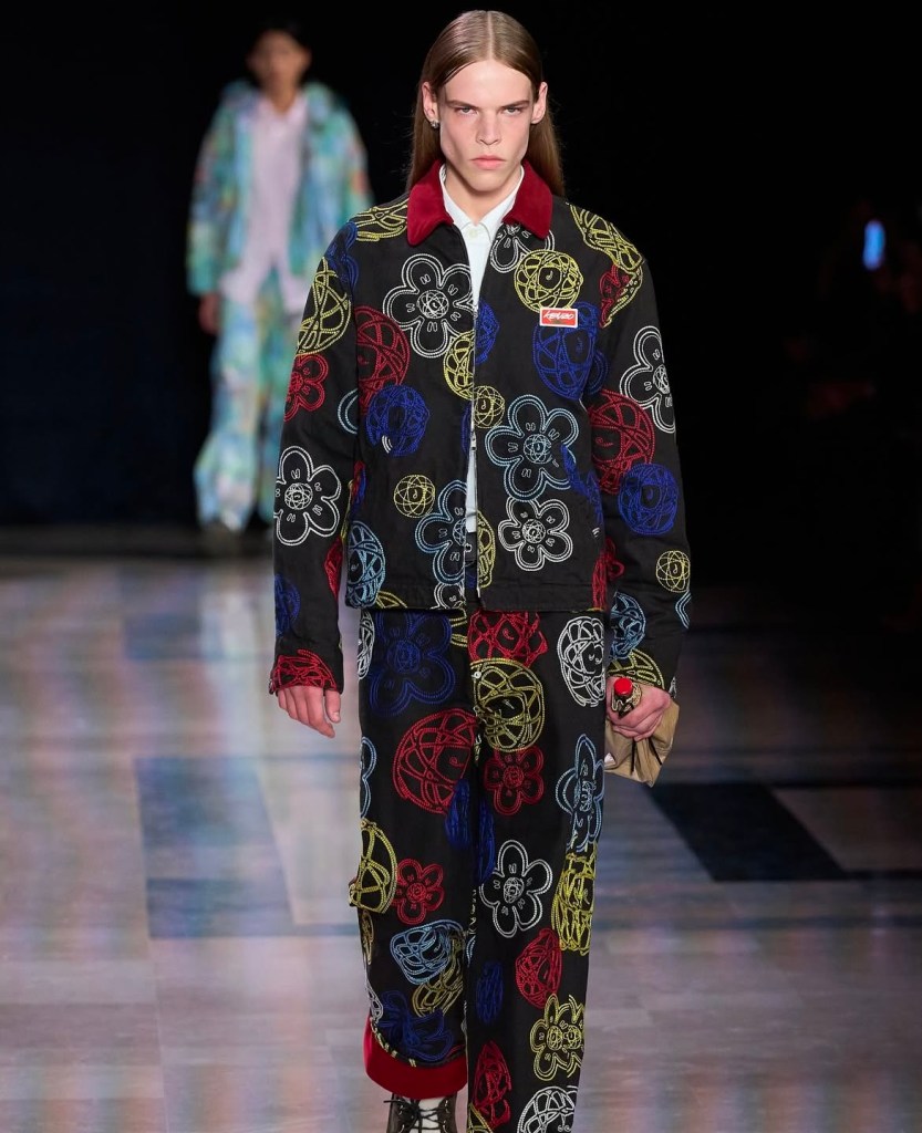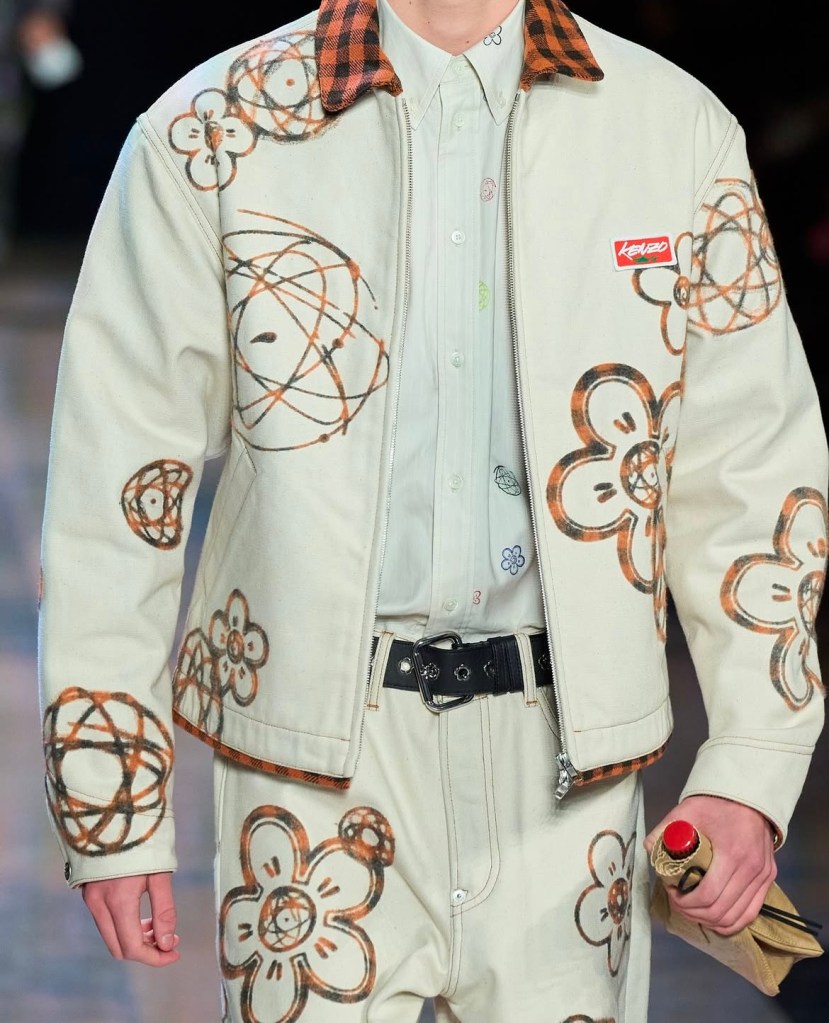 La collection Kenzo Automne/Hiver 2025 se distingue par son audace et son originalité. Les pièces, imprégnées de l’univers graphique de Futura, mélangent des motifs géométriques, des explosions de couleurs et des touches futuristes. Chaque vêtement semble raconter une histoire, où l’art et la mode se confondent pour créer une expérience visuelle immersive.
