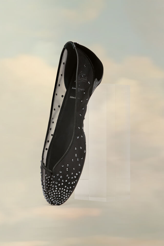 Parmi les pièces phares de cette collection, on retrouve la Bridiela Una Strass, une chaussure qui mêle l’esprit couture de Margiela à la sensualité provocante de Louboutin, ornée de cristaux étincelants. La ballerine Marlougiela est également au cœur de cette collection, une réinvention d’une silhouette classique avec une touche de luxe extrême : des cristaux, des formes audacieuses et un design qui ne laisse personne indifférent.
