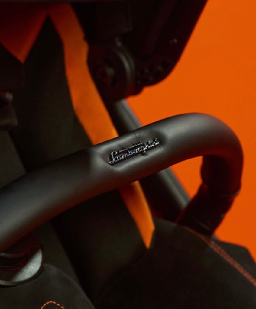 Affichée à 5 500 €, cette poussette n’a rien d’ordinaire. Elle reprend les codes des voitures de la marque : élégance, performance et exclusivité. Son nom, Reef AL Arancio, rend hommage à la célèbre teinte orange emblématique de Lamborghini (Arancio Argos), que l’on retrouve sur les modèles les plus prestigieux, comme l’Aventador ou l’Huracán.