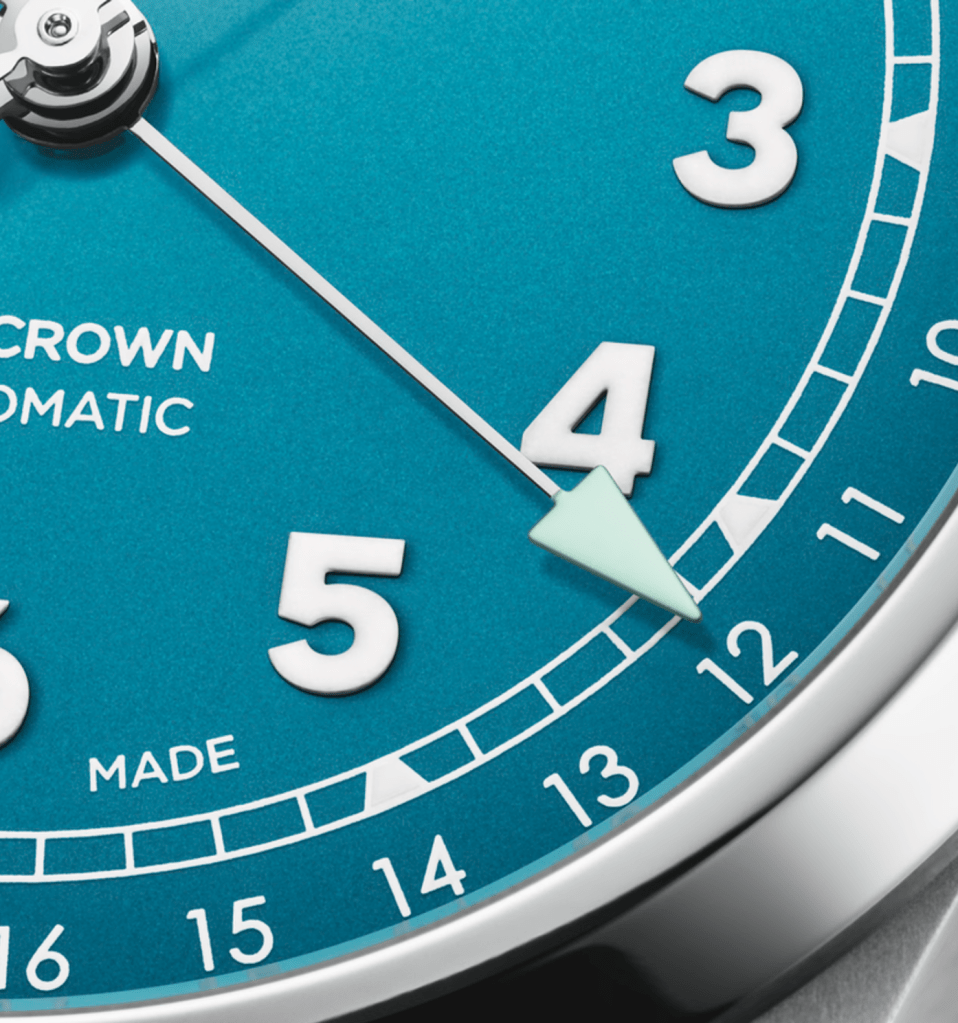 Les cadrans se déclinent en plusieurs coloris sophistiqués : un vert profond, un terracotta chaleureux, mais aussi des teintes plus contemporaines comme le bleu ciel, le jaune pastel, le lilas ou encore le noir avec index diamants sur la version 34 mm, qui ajoute une dimension bijou à la collection. Les aiguilles cathédrales et chiffres arabes, rehaussés de Super-LumiNova, assurent une lisibilité sans faille.