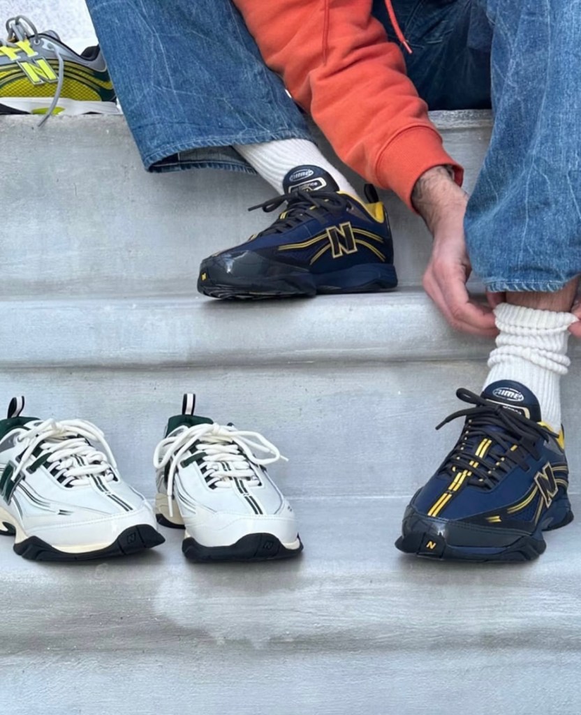 Au menu : matériaux premium (cuir luxueux, mesh technique), lignes modernisées, et une silhouette racée qui joue entre rétro-futurisme et minimalisme sportif. Le tout porté par un soin du détail millimétré – la patte d’Aimé Leon Dore est partout, sans jamais écraser l’ADN New Balance. C’est du co-design pur, et ça se sent.