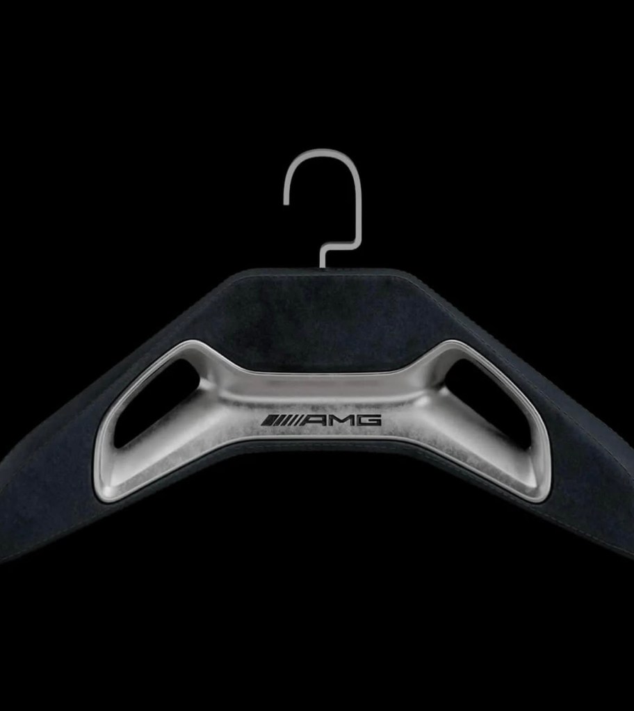 La collection ne s’arrête pas au mobilier. Elle s’accompagne de vêtements et accessoires inspirés par l’univers AMG, comme des t-shirts imprimés de scans moteur ou une fragrance fictive en forme d’arbre fruitier, clin d’œil à Affalterbach, berceau historique de la marque.