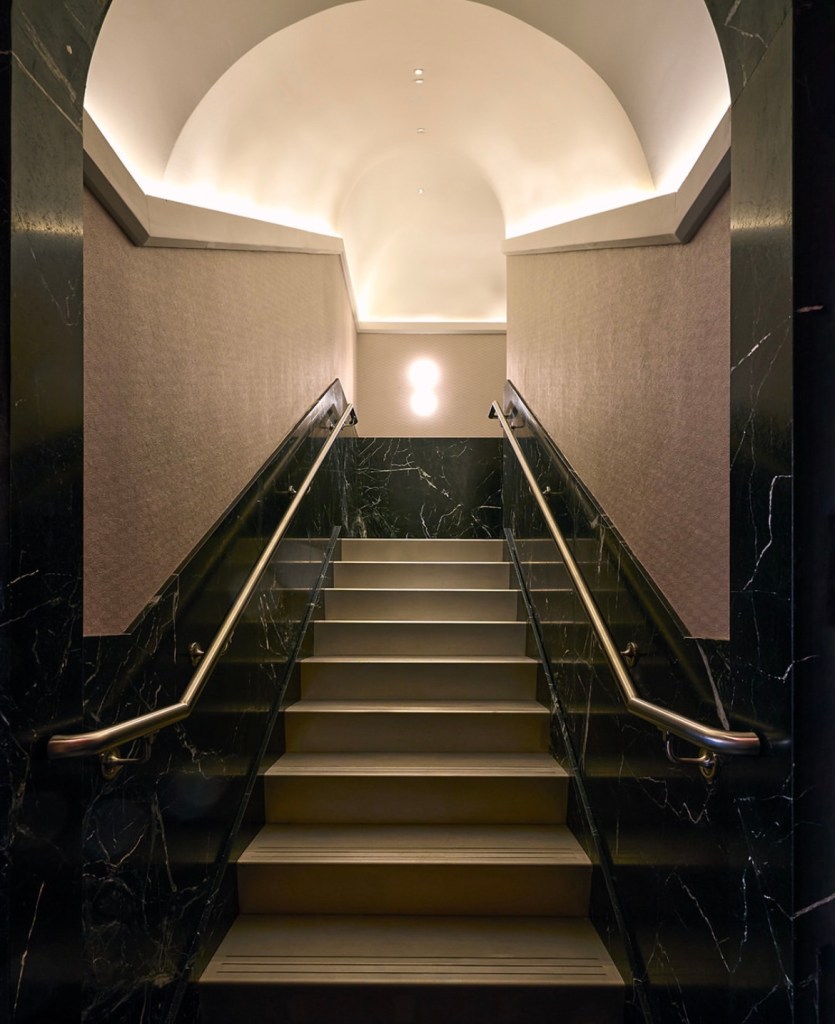 Chaque étage du nouveau flagship raconte une histoire visuelle, pensée comme une ascension dans l’univers Kith. Le design intérieur, subtil mélange de matériaux nobles, joue avec les contrastes : on passe de tonalités sombres à claires au fil de la montée.