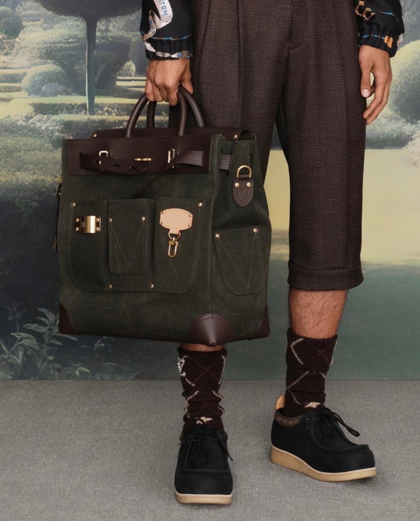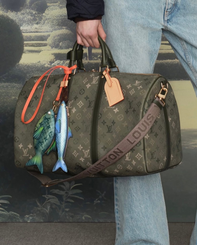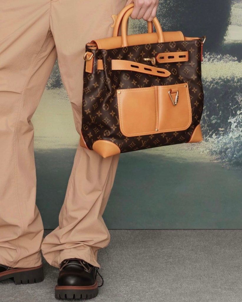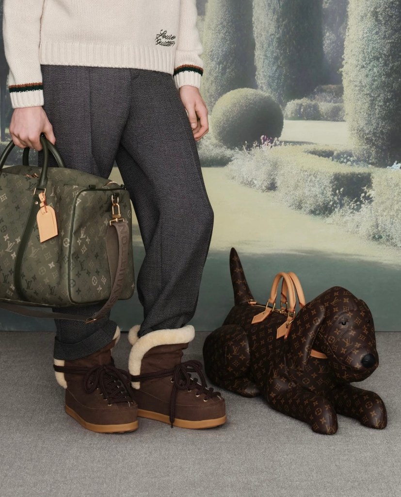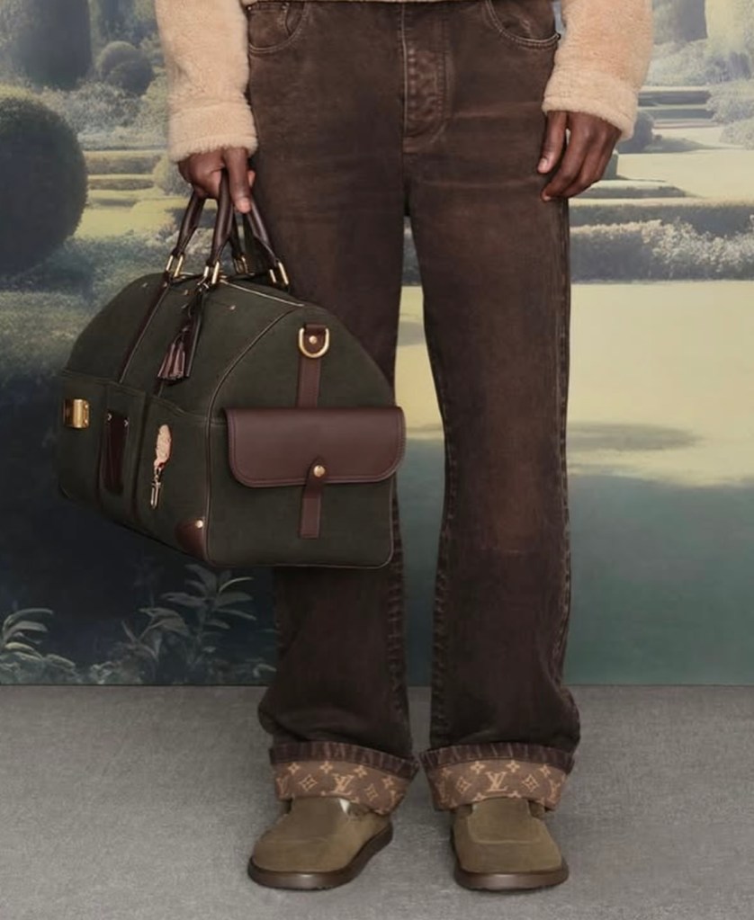 Le logo iconique s’offre un nouveau trip : baptisé « Monogram Surplus », il se décline façon camo chic, imprimé sur des parkas, du denim, des sacs Keepall, voire des tentes. Un clin d’œil aux terrains militaires, recyclé en terrain de style.