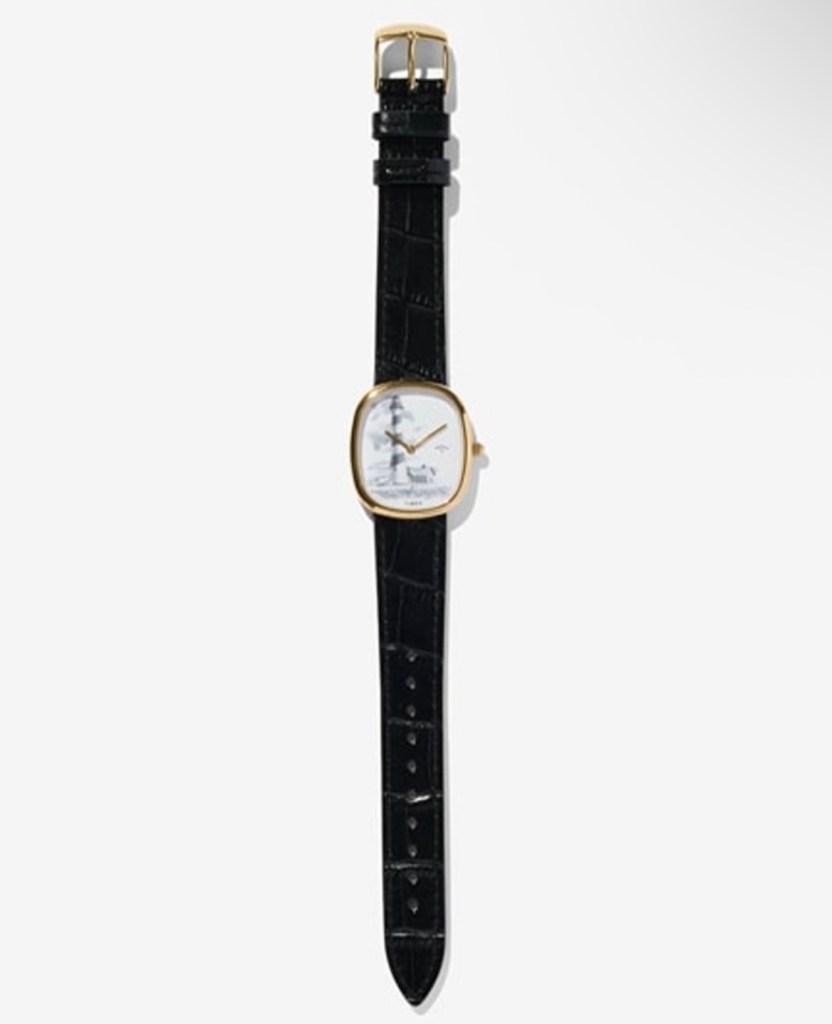 La Lighthouse Watch présente un boîtier ovale de 31 x 35 mm, évoquant la Patek Philippe Golden Ellipse, et arbore un cadran monochrome orné d’un phare. Dépourvue de chiffres, elle mise sur la sobriété, complétée par un bracelet en cuir et des éléments dorés.