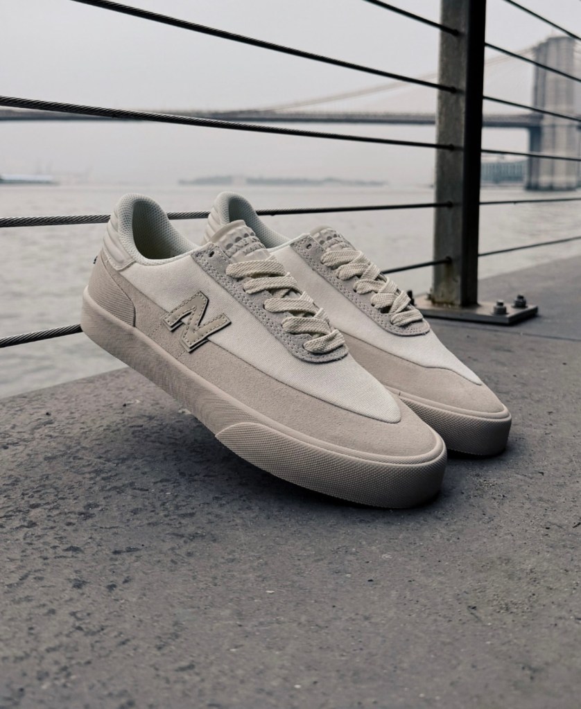 New Balance et Stone Island n’en sont pas à leur coup d’essai, mais jamais encore ils ne s’étaient aventurés sur le terrain du skate. Avec la silhouette Numeric 272 – modèle prisé des skateurs pour sa souplesse et sa robustesse – la marque italienne injecte son ADN technique : toile canvas, suède haut de gamme, finitions réfléchissantes et même des œillets en aluminium inspirés des voiliers.