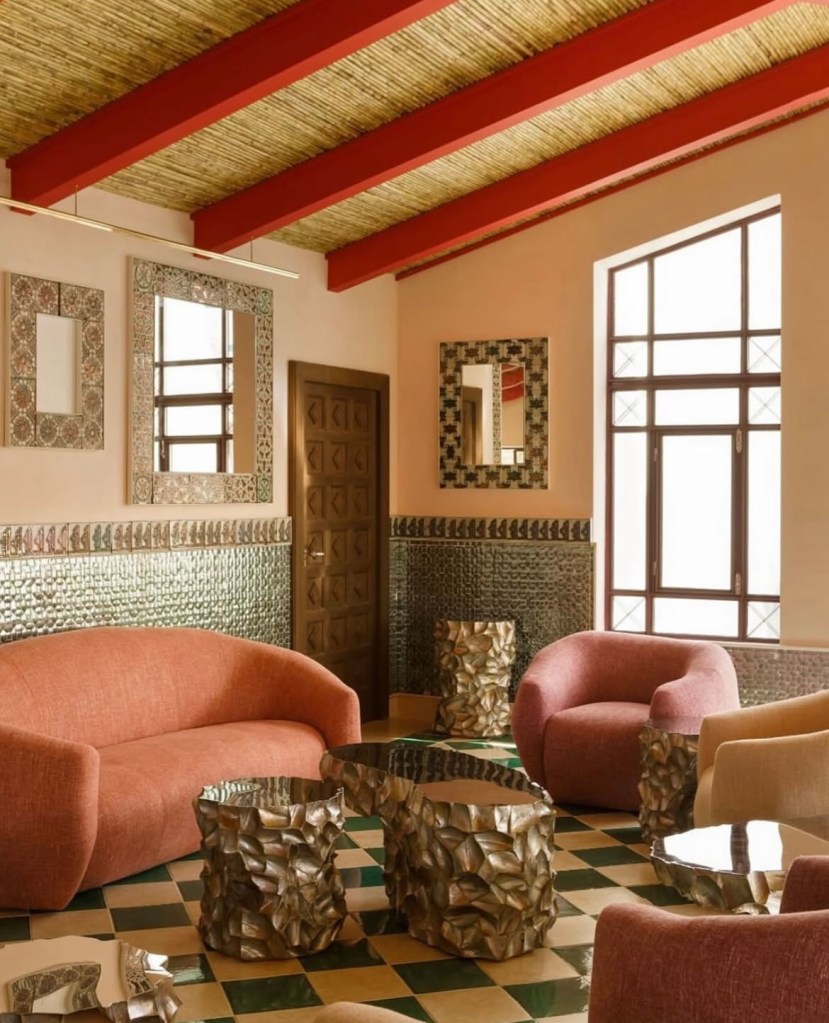 Les 13 chambres, toutes uniques, jouent la carte du luxe discret. Ici, le rouge n’est pas criard — il est murmuré, parfois dans un tissu, une céramique, un détail au plafond. C’est une signature, pas un logo.